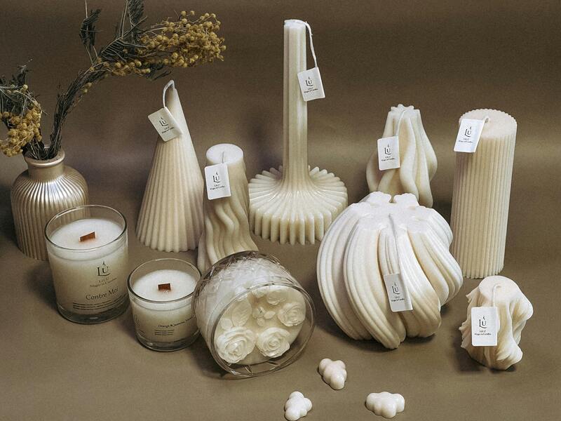 * Made from wax (soy, paraffin, or beeswax) and scented oils.